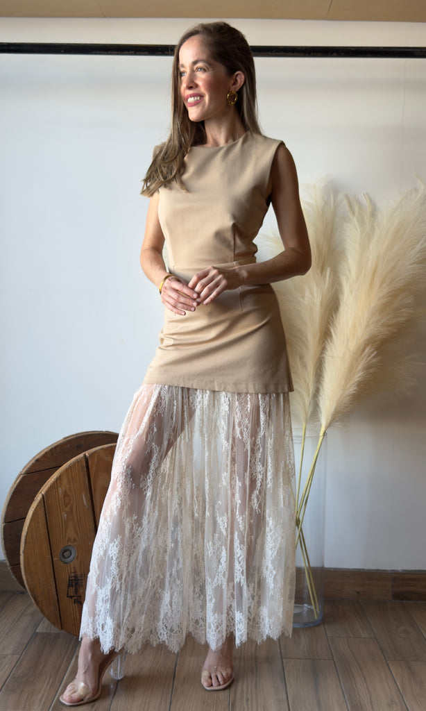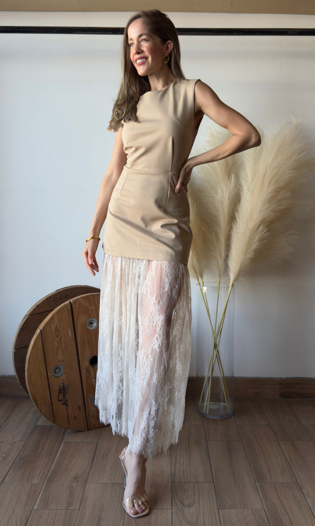 Lace Contraste Sleeveless Dress