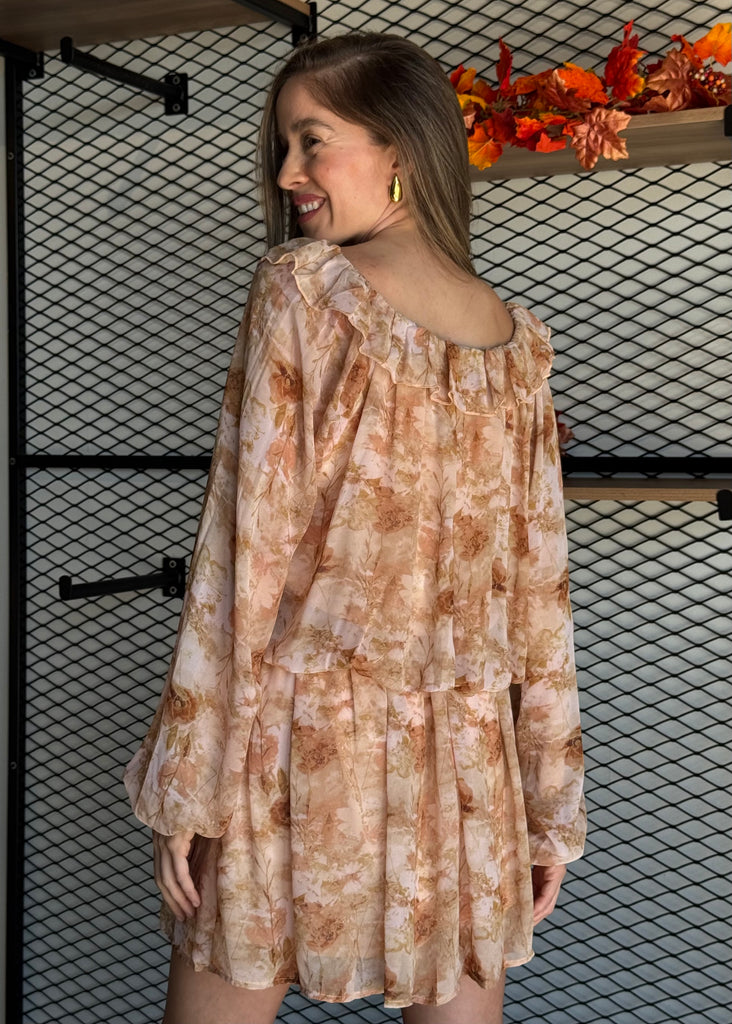 Long Sleeve Elastic Waisted Mini Dress