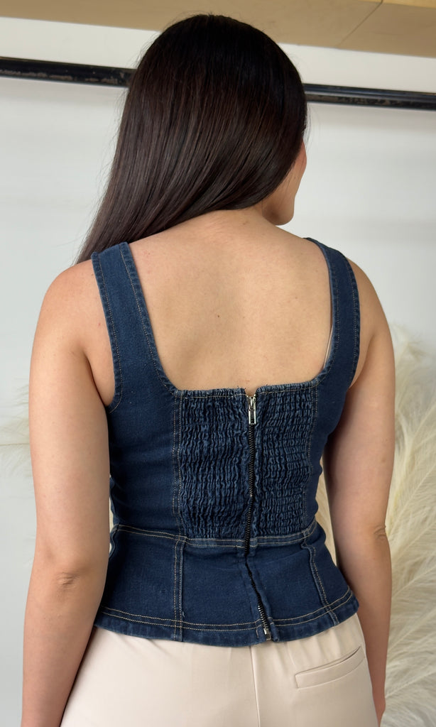 Lace Up Front Sleeveless Denim Top