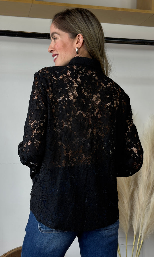 Black Lace Button Blouse