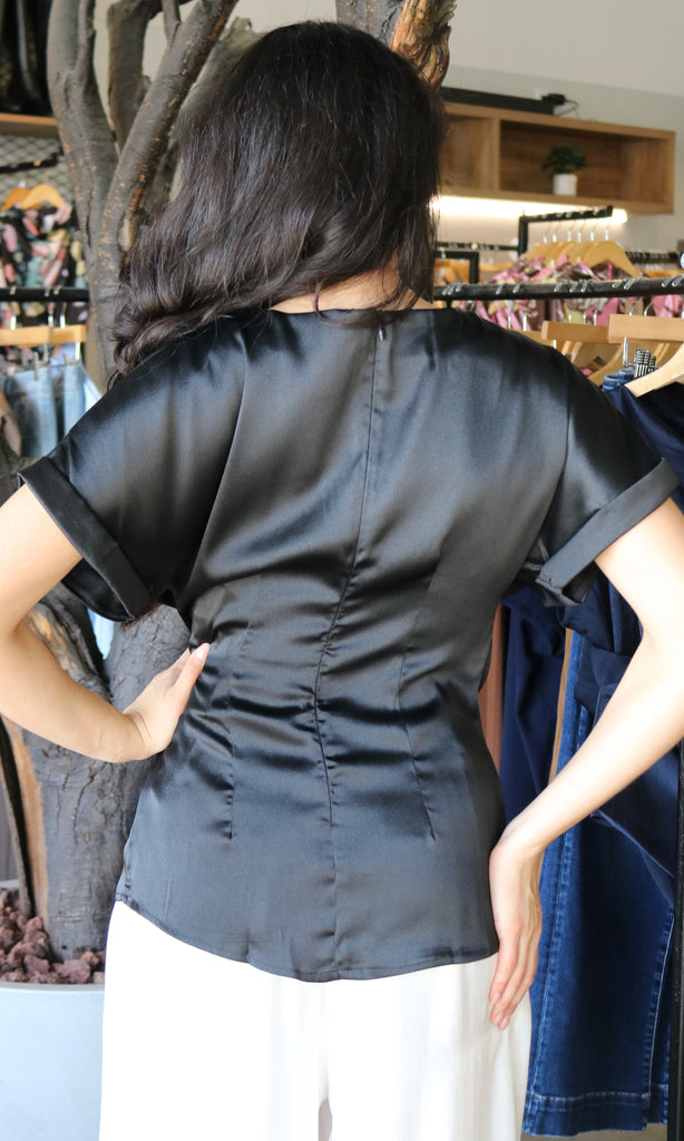 Gathered Metal Trim Short Sleeve Top